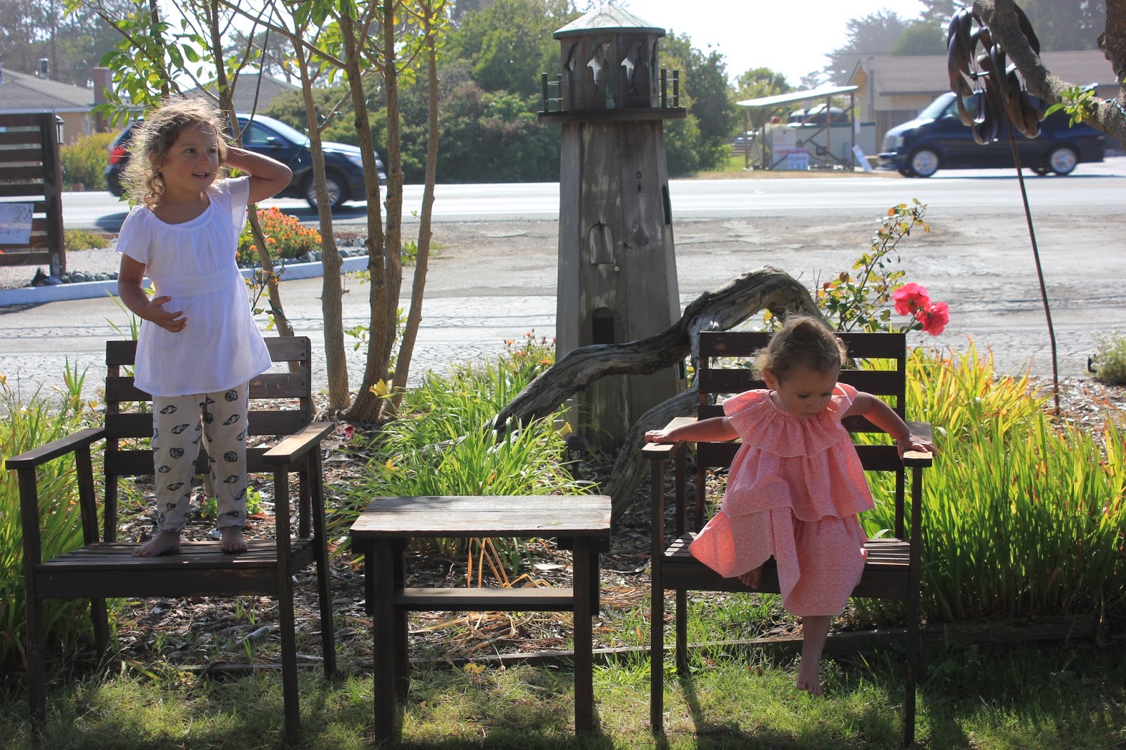 Next morning, we had coffee at Headlands, which felt cozy and familiar since we spent so much time there before. I always used to get my classic "Darin and coffee mug" photo on trips at coffee shops. Now it's Darin trying to pause for half a second while two little girls bounce off the walls.
